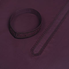 Men Unstitch 100% Textured Cotton Fabric Embroidered Kurta - Maroon-Oak